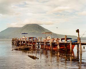 Lake Atitlán resides in a massive volcanic crater in the southwestern region of Guatemala. There are numerous towns surrounding the lake that rely on it for the main source of transportation and trade between villages. In the distance you can see two of the major surrounding volcanoes overshadowing the deepest lake in Central America. Captured using a vintage Hasselblad 500cm film camera. Guatemala - July 2023