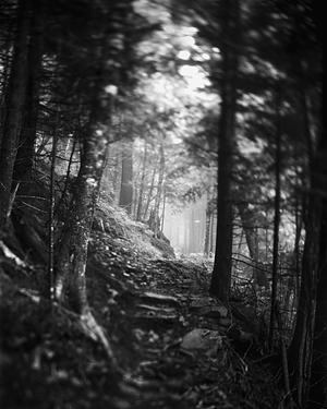A thick fog shrouds the paths within the Great Smoky Mountains. Captured using a vintage 4x5 field camera Smoky Mountain National Park - August 2020