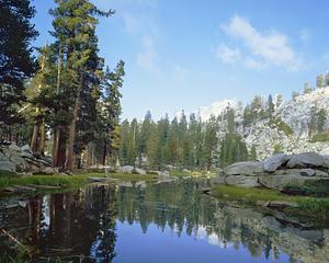Heather Lake resides near a breaking point of a strenuous uphill hike. The still water allowed for a mirror-like image along the lake top. Captured using a vintage 4x5 field camera. Sequoia National Park - July 2020