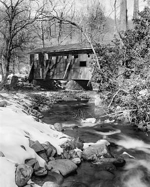 This iconic covered bridge is perfectly located on Sleepy Hollow Road in North Carolina. Snow covers the ground from a few days earlier and the water still flows freely beneath the sinister bridge. Captured using a vintage 4x5 field camera. Sleepy Hollow - February 2022